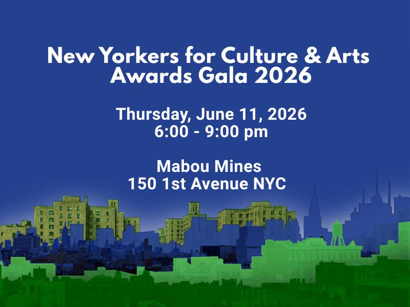 Please join us on Thursday, June 11, 2026 from 6-9pm at Mabou Mines at 150 1st Avenue in the Lower East Side for the fifth annual New Yorkers for Culture and Arts Awards Gala!